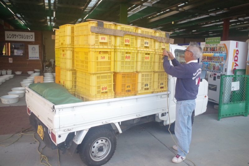 そして裏方的仕事といえば、島のらんちゅう師ことMさんは、毎年、興居島という離島からミカン用コンテナを運んでくださってます。