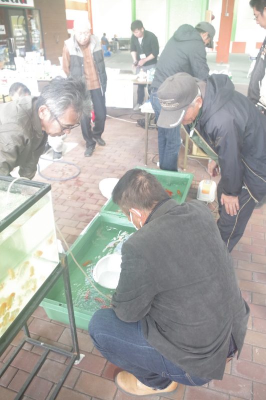 ここで種魚(繁殖の親にする魚)を物色する愛好家さんたちは真剣そのもの。