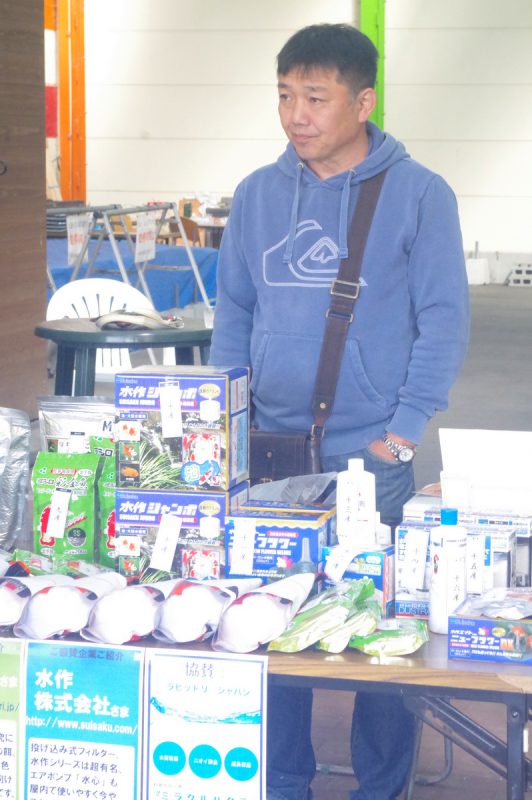 かれは現在、家庭の事情で「幽霊会員」的存在ですが、らんちゅう飼育は続けてますし、品評会の手伝いに来てくれました。