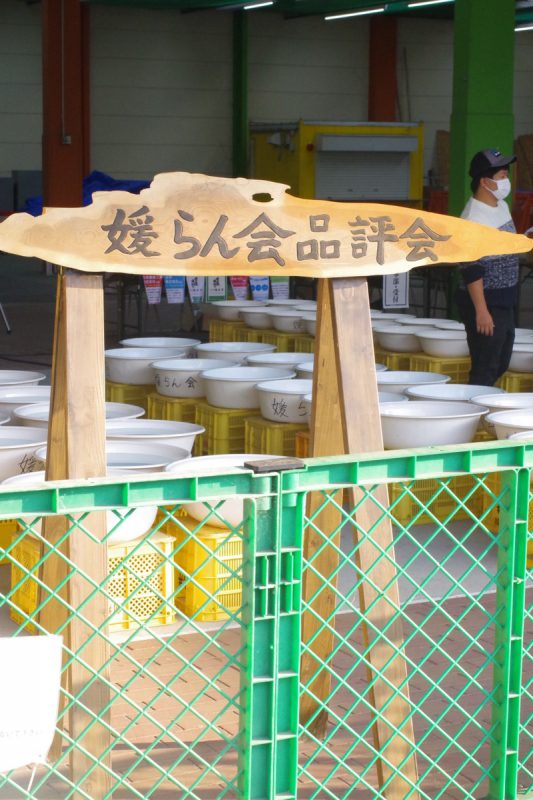 媛らん会の特徴として1尾ずつ洗面器に入れ、審査時に洗面器ごと移動する「メンキ審査」というのを採用しています。他の魚と交わらないことで病気を予防できる…小規模な愛好会だからこそのシステム。