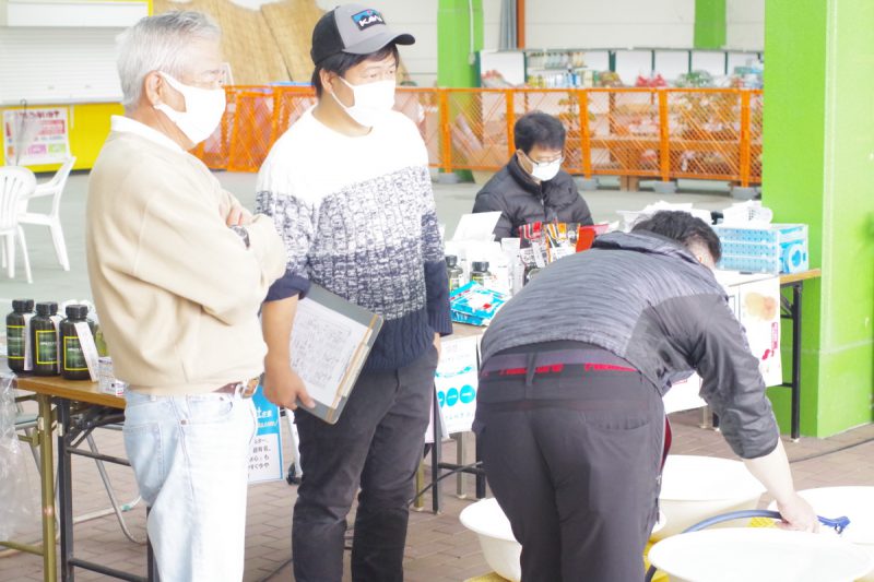 分譲魚コーナーにはほとんど人が絶えず、遠方からこれ目当てに来場してくれた親子連れもいたり、予想以上に賑わいました。審査前からお客さんが次々と。