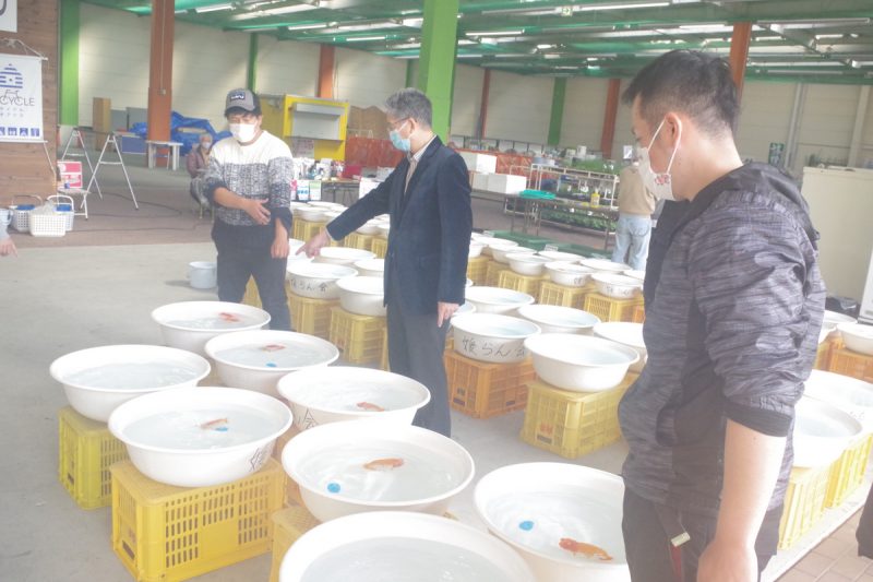 いつもは日らん西日本の九里博公さん、静岡県から工藤千尋さん、徳島の阿波錦魚連合会のメンバーらが駆けつけてくださり、審査を務めてくださるのですが、今回は県外からの招致もなく、会長自らが審査員に。