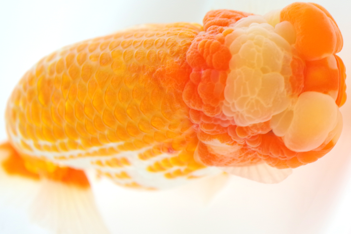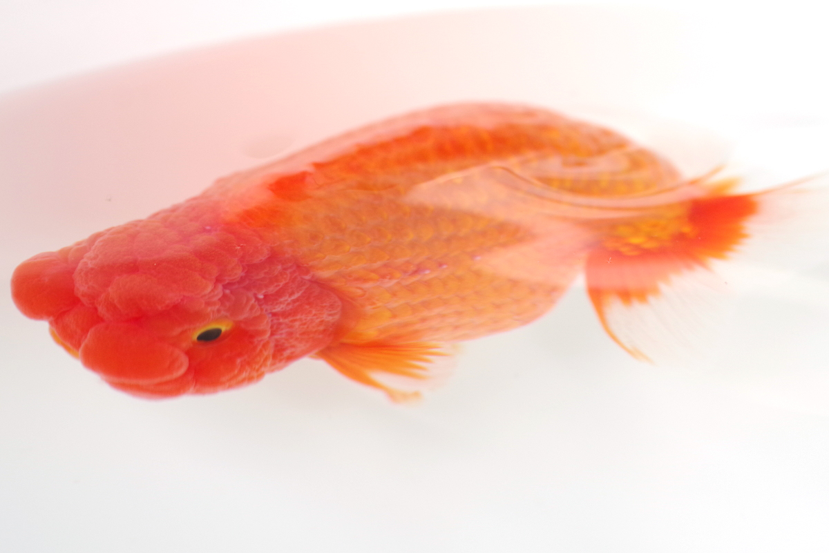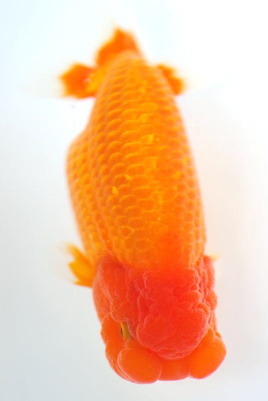 生まれてまだ2年の魚とは思えない迫力と、プックプクに発達したフンタン。洗面器の中を悠々と泳いでました。