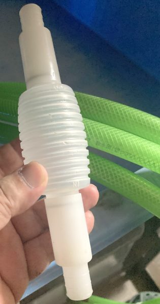ご存知の方はとっくに知ってるんでしょうけど(そもそもらんちゅうを本格的にやってる人はシュポシュポなんか使ってない説あり)、これ普通のホースにつけてシュポれば、排水できます。