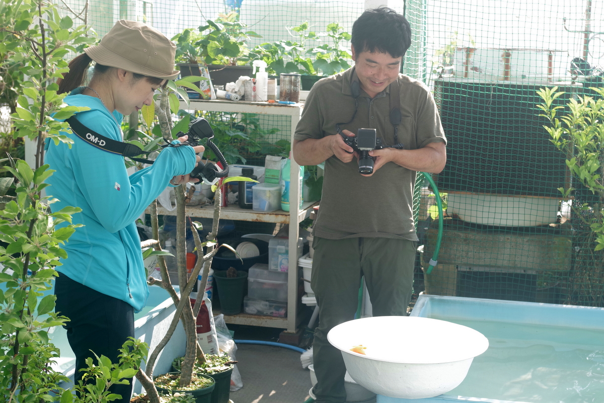 今回は松山市在住の尾園さんの「虫仲間」お二人も見学兼アシスタント的に来場、撮影されたり、会長の魚を見て「ふんたんがスゴイ!」と驚いたりされてました。