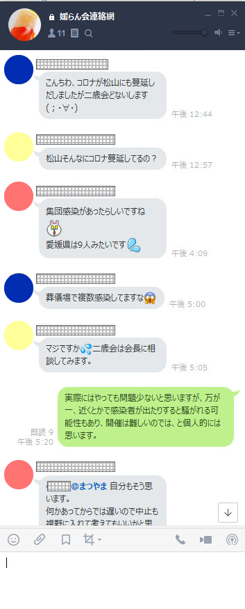 一方、松山市でもコロナ感染者が出始め、3月下旬から若手のLINEグループでは「二歳会どうなるん?」「やれるんかな?」という不安の声が。