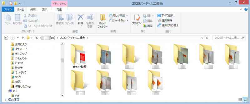 各フォルダに動画を入るのが溜まりにらんちゅうを入れる…って感じでしょうか。