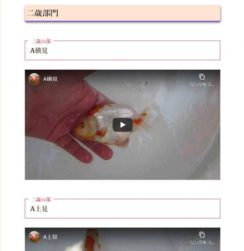 品評会場のページ(会員専用)にアップした動画をぜーんぶ貼り付けていきました。