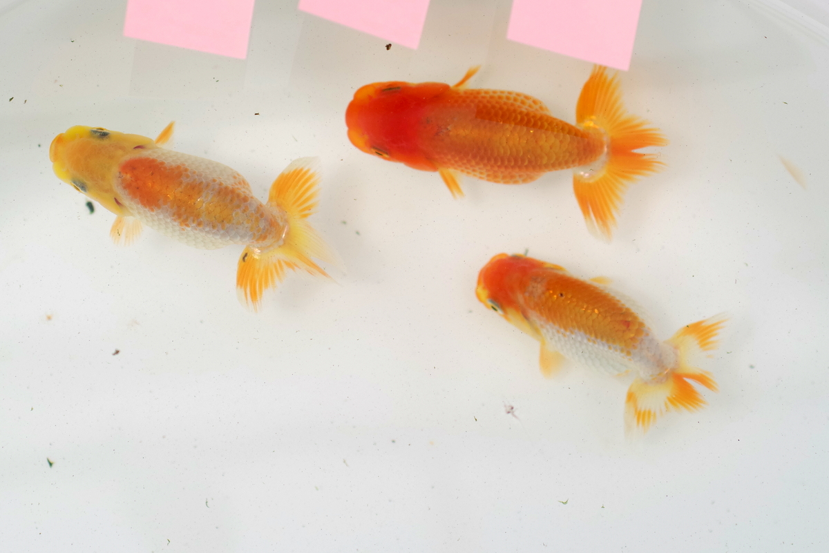 会員が仔引き(自家産卵)した魚も、すべてもとは会長さんの魚ですから、飼い手の育て方や環境によって、らんちゅうは本当に姿や雰囲気を変えますし、どの仔を選んで研究会に来てるかでもそれぞれの個性が出てると思います。