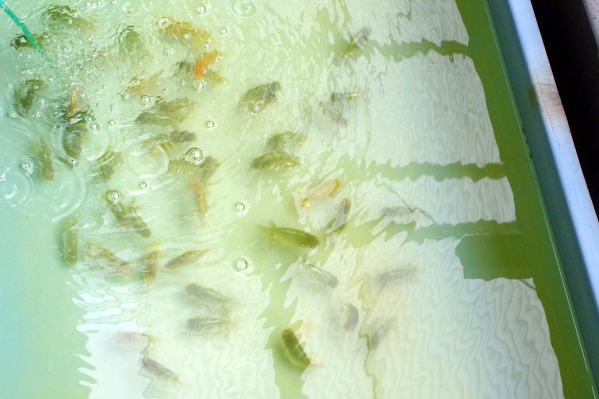 こちらは会員への分譲予定魚。順位が低い順に選んで持ち帰れたので、私が一番槍で3尾選びました 🙂