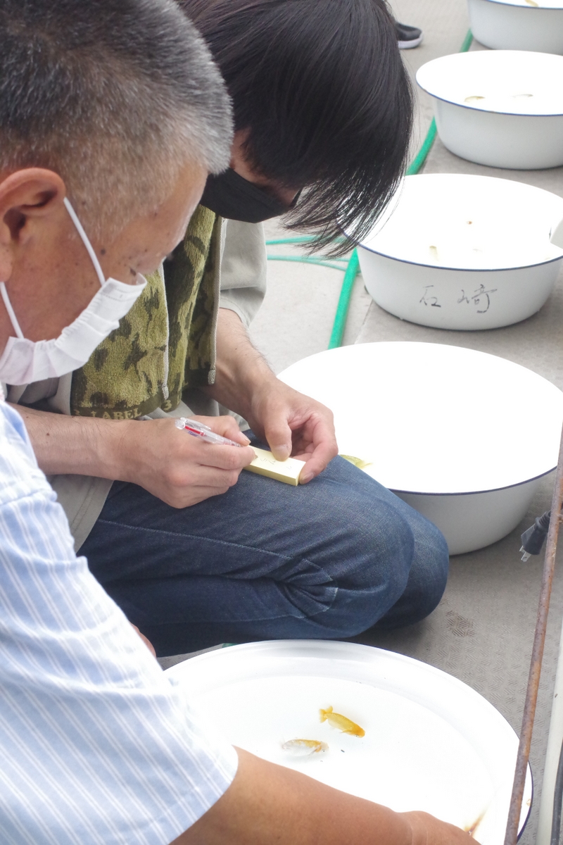 媛らん会の当歳研究会はまず、魚にアイウエオ~とナンバリングします。
