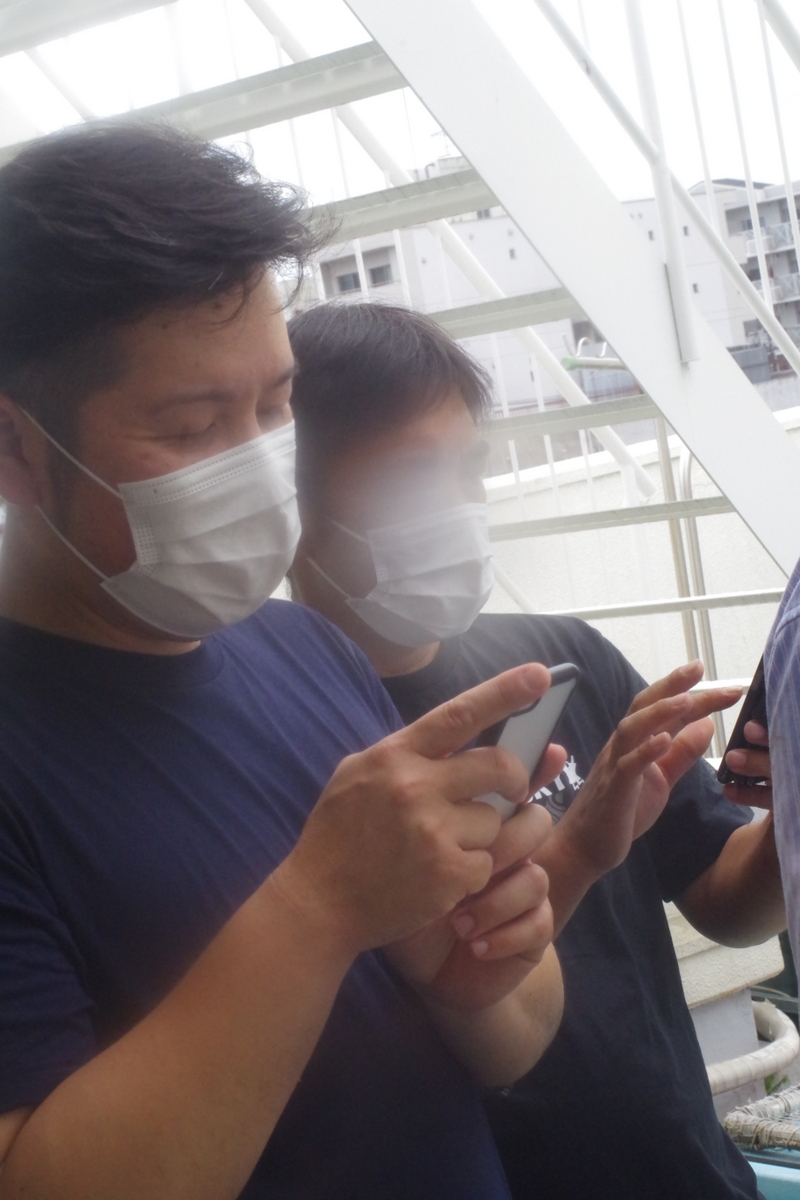 スマホで順位を入力する会員さんたち(カメラのレンズが曇っててすみません)。