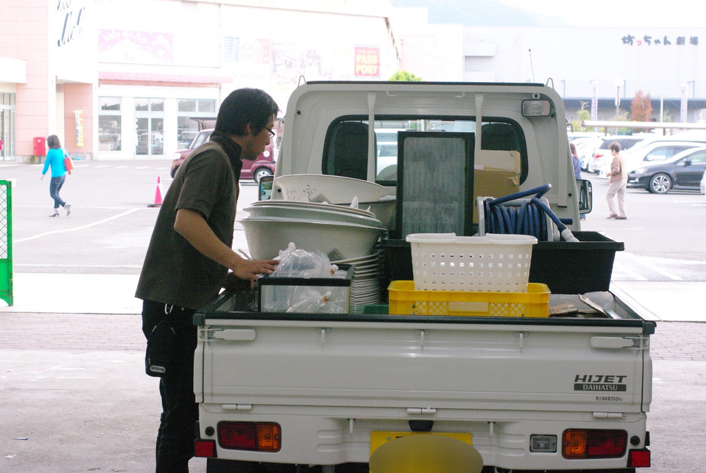 あれよあれよという間に洗面器などが車に積まれて生きます。